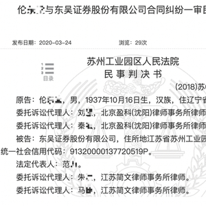 新浪财经讯 近日,裁判文书网公布了一则判决书,东吴证券一名客户伦某某开通了两融业务后将账户内583万亏空,以公司违规操作其账户等理由将东吴证券告上法庭索要本金和损失693万。法院认为其主张并不合理且举证不足,最终驳回了其全部请求。