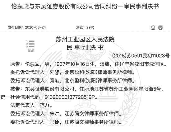 客户开通两融后账户亏583万 以被骗为由起诉东吴证券