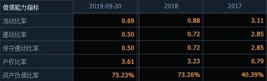 此次收购,除了亏损,天齐锂业的资产负债率从2017年的40.39%猛增至2018年的73.26%,再到2019年三季度继续攀升至75.23%,天齐锂业陷入负债的泥潭。