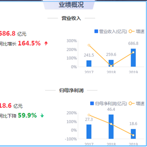 新浪财经讯 3月29日晚间,洛阳钼业发布2019年度年报,2019年公司实现营业收入687亿元,同比增长164.52%。净利润由 2018 年度的 51.50 亿元减少 33.84亿元至 17.66 亿元,同比降幅为65.71%。