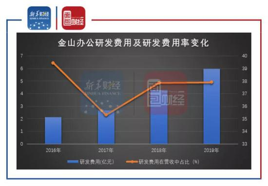 图3:2016-2019年金山办公研发费用及研发费用在营收中占比变化