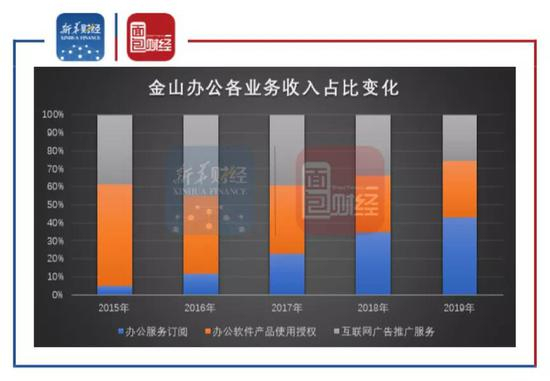 图1:2015-2019年金山办公各业务收入占比变化