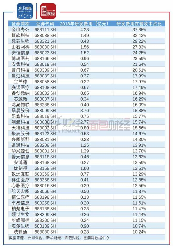 图4:2018年研发费用在营收中占比超过10%的科创板已上市公司