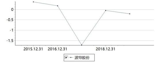 数据显示,2017年、2018年,波导股份实现营收分别为16.2亿元、6.07亿元,同比增长幅度分别为-49.22%、-62.5%,至2019年,波导股份的营业收入已经连续三年出现了两位数的下滑;净利润方面则呈现出波动大、不稳定,2017年、2018年净利润分别为大幅亏损1.53亿元、3310.29万元,同比分别为-595.68%、121.68%。