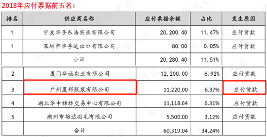 (广州夏邦服装有限公司同时位列应付票据、应收账款前五名,且交易额较大 来源:公司2018年年报)