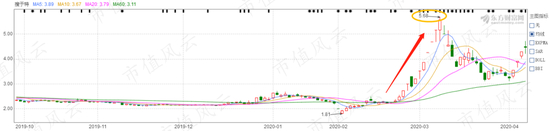 (截至2020.4.8搜于特的股价波动,图片来源:东方财富网)