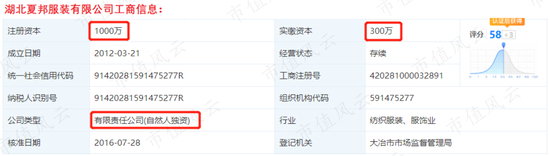 (夏邦服装关联方湖北夏邦服装有限公司工商信息,来源:天眼查)