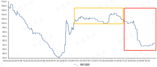 (国内棉纱2014.4~2020.4价格指数走势,来源:choice数据)