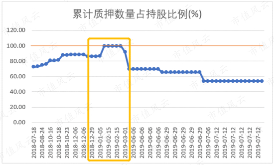 (2018.7~2019.7公司实控人马鸿累计质押数量占持股比例情况,数据来源:choice数据)