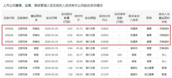 此外,据深交所数据,陈建荣还分别在3月23日~3月25日减持了亿联网络50000股,按照成交均价来计算,陈建荣这三天减持就已经套现近457万元。