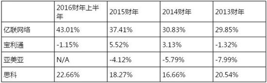 光从数字来看似乎不能说明问题,那么来将亿联网络的毛利率和上述三家美国的竞争对手来对比看看: