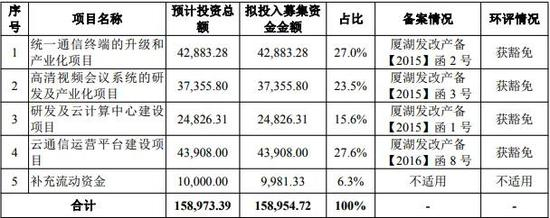 记者注意到,亿联网络承诺的募集资金项目,在未完成的情况下就产生了大量收益。公司在招股书中称, IPO发行1867万A股,发行募集资金扣除发行费用后,将投资于统一通信终端的升级和产业化项目、高清视频会议系统的研发及产业化项目、研发及云计算中心建设项目、云通信运营平台建设项目,以及补充流动资金。