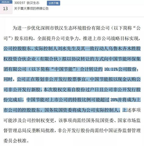 12日晚间,尚在停牌期的铁汉生态,就“品尝”了这一套餐。