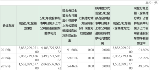 云南白药同步披露,拟向股东每10股派发现金红利30元(含税),共派发现金股利38亿元,该现金分红总额(含其他方式)占合并报表中归属于上市公司普通股股东的净利润的比率高达91.60%。