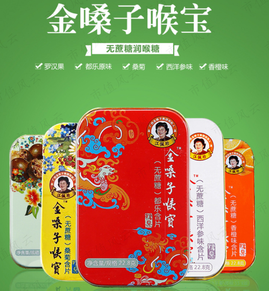金嗓子喉宝是公司于2013年推出的无蔗糖成份的润喉糖,属于糖果类。细分一下,除了原味,金嗓子喉宝还有西洋参味、香橙味、罗汉果味等。