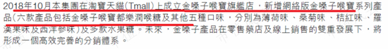 2018年10月,金嗓子首次在天猫平台开立金嗓子喉宝旗舰店,线上渠道的拓宽也是一笔不小的支出。