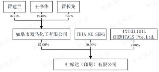杜库达是印尼公司,但其由我国境内的如皋市双马化工控制,冒建兰是实际控制人。