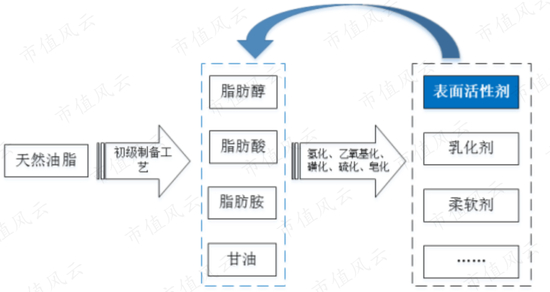 换言之,油脂化工业务与表面活性剂是产业链上下游关系。