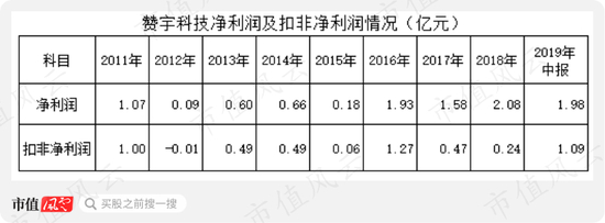 2016-2018年虽然赞宇科技的营收规模在增长,但,其扣非净利润与净利润的变动却出现明显的背离。