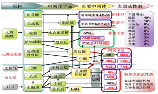 表面活性剂产业链流程图如下: