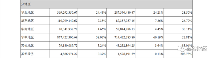 分地区来看,2019年,酒鬼酒的收入主要来自华中地区,占比在58%左右,其次则是华北地区,占比在24%左右,华东地区和华南地区占比各在7%和5%左右。