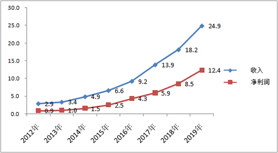 亿联网络2012-2019年收入和净利润情况(亿元)