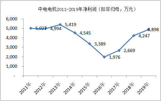 中电电机于2014年11月在A股主板上市,主营产品是发电机,最近九年盈利趋势如下: