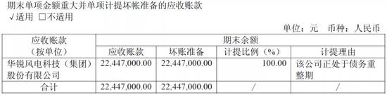 而在上市之前,中电电机并未对华锐风电的应收账款单项计提坏账准备。