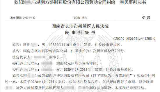 方盛制药昔日人力副总称被迫离职 沟通无果追偿40万