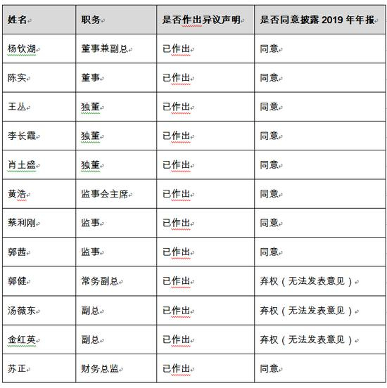 4月24日,深圳市兆新能源股份有限公司(下称“兆新股份”或“公司”)在巨潮资讯网发布《2019年年度报告》(下称“2019年年报”或“年报”),年报重要提示部分载明了兆新股份董监高的异议声明。根据年报披露信息,全体董监高表示异议的原因主要有:会计师事务所出具了无法表示意见的《审计报告》和否定意见的《内部控制鉴证报告》,公司内控存在重大缺陷,公司违规融资、为大股东违规提供担保、会计处理存在调节,相关事项缺乏商业实质、充分证据、合理解释、事实尚未查清等。结合年报中董监高任职状态来看,全体现任董监高均对年报提出了异议。