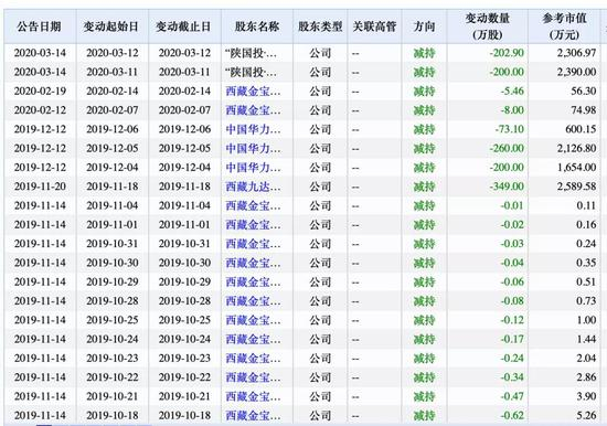 其中,减持最多的股东之一为娄晓曦控股的西藏金宝藏,据wind数据显示,2019年,该股东合计减持659.97万股,对应的参考市值为6180万元。