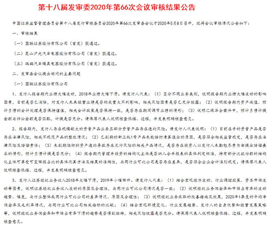 5月8日,第十八届发审委2020年第66次工作会议,审核通过了国联证券的IPO申请。