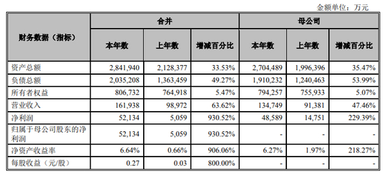 全年实现营业收入16.19亿元,同比增长63.62%;归属于母公司股东的净利润为5.21亿元,同比增长930.52%。截至2019年12月31日,总资产为284.19亿元,同比增长35.53%;净资产为80.67亿元,同比增长5.47%;加权平均净资产收益率为6.64%。