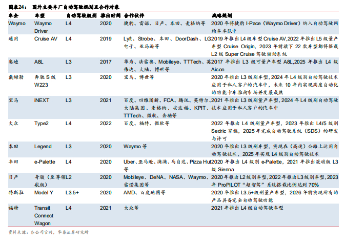 主要威胁来自于自动驾驶两大巨头——谷歌母公司Alphabeta旗下自动驾驶公司Waymo,以及通用Cruise系列。前者将于2020年推出L4级自动驾驶系统,搭载车型为捷豹I-Pace。后者则于2019年推出L4级可量产车型Cruise AV,受法规影响至今未实现量产,计划于2022年推出L5级可量产车型Cruise Origin。