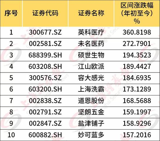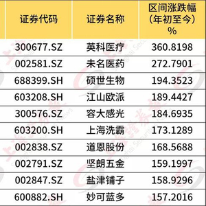 今年以来A股涨幅排名