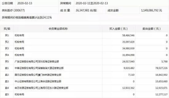 英科医疗2月11日至13日龙虎榜