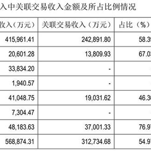据2019年年报,公司的主营业务收入中,来自关联交易的收入占比高达54.97%。