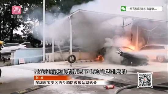 据深圳都市频道的《第一次现场》报道,西乡消防救援站副站长介绍,起火是在没有充电的情况下电池自燃引发的。
