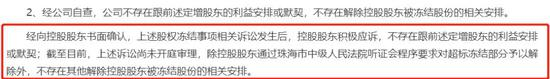 问询函提问道,公司或控股股东是否存在跟前述定增股东的利益安排或默契?是否存在解除控股股东被冻结股份的相关安排?