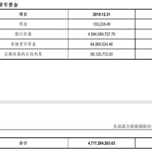 由于存在大量的受限资金,根据现金流量表的数据,2019年东旭蓝天的现金及现金等价物仅有6.57亿元,与账面货币资金的差额基本就是受限资金。