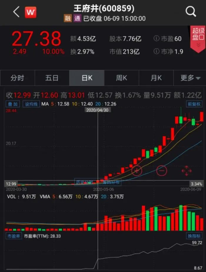 百货行业经营不景气,王府井股价却一个月暴涨110%