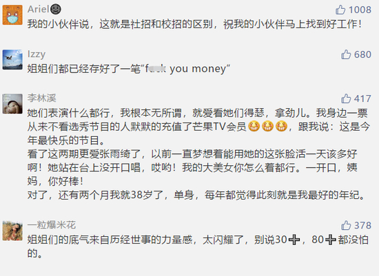 最重要的一点是,她们打破了“女性受困于年龄”的传统认知,展现了成熟女人的魅力和价值,传递了“女性不被年龄定义”的价值观;其次,这些姐姐们在圈内打拼多年,资历较深,粉丝基础大,节目受众自然也广。