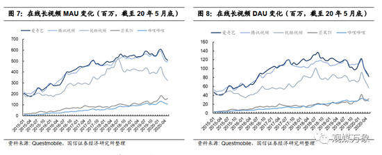 根据Questmobile数据显示,截至5月底,四大视频平台的MAU/DAU均有向下趋势时,芒果TV的用户活跃数反而有抬头迹象,显示出芒果TV爆款综艺的内容优质程度。2020年5月爱奇艺、腾讯视频、优酷视频、芒果TV和B站的平台MAU环比增速分别为-3.96%/-0.98%/-6.25%/9.28%/-6.91%,DAU环比增速分别为-11.22%/-1.09%/-15.84%/14.96%/-7.77%,芒果TV的用户活跃环比增速是唯一实现正增长的平台,随着《乘风破浪的姐姐》上线和强势的播放数据,预计芒果TV的活跃用户数有望在Q2实现较快增长。