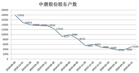 中潜股份2018年三季报股东户数17903户,今年3月10日公司公布的数据最低到3711户,不到一年半间缩水79%。
