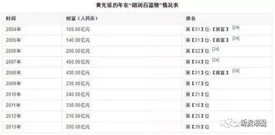 黄光裕也因国美的不断壮大 ,在2004、2005、2008年三度登上胡润百富榜首富,其中个人财富最高时达到450亿元。
