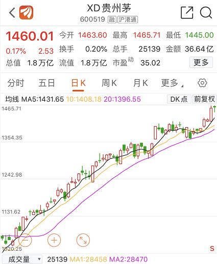 6月23日,贵州茅台股价收盘于1474元,再创历史新高。茅台在过去十年里成就超级牛股。茅台的销售价格上涨也令人咂舌,一瓶飞天茅台在上世纪80年代的售价是一美元,现在是400美元。在过去五年内,茅台的股价飙升了近600%,这一表现超过亚马逊之类的科技巨头。