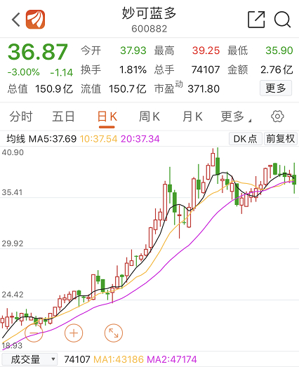 自今年年初开始,主营儿童奶酪的妙可蓝多股价涨幅,在短短六个月的时间内已高达1.56倍。业内人士认为,妙可蓝多股价上涨背后的驱动力是女性消费驱动。