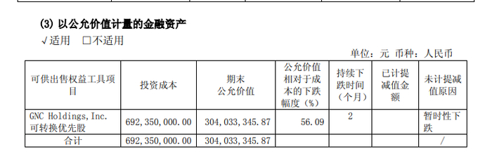 根据哈药股份2018年年报,GNC股价在2018年就持续下滑。报告期哈药股份对GNC可转换优先股的期末公允价值为3亿元,相较于成本下跌已经达到了56.09%,持续下跌时间为2个月。