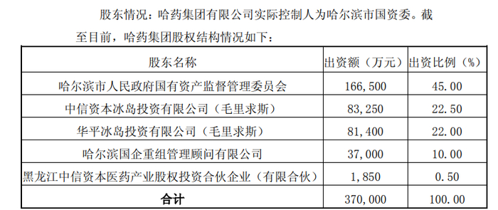 值得注意的是,哈药集团在2005年通过增资扩股改制成为国有控股的中外合资企业,中信资本(中信资本冰岛投资有限公司)即为哈药集团的第二大股东。