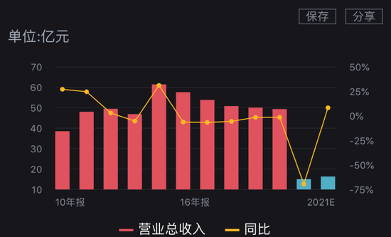 近年来,受互联网渠道冲击,主要从事线下零售业务的翠微股份业绩表现不佳,从2013年以来连续7年营业收入持续下滑。
